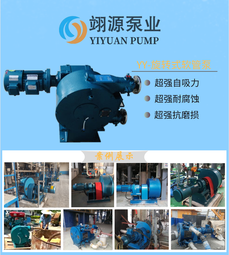 3.泵吸的流体仅与胶管接触,因而,可输送各种粘度、密度、腐蚀性、磨蚀性流体物料;