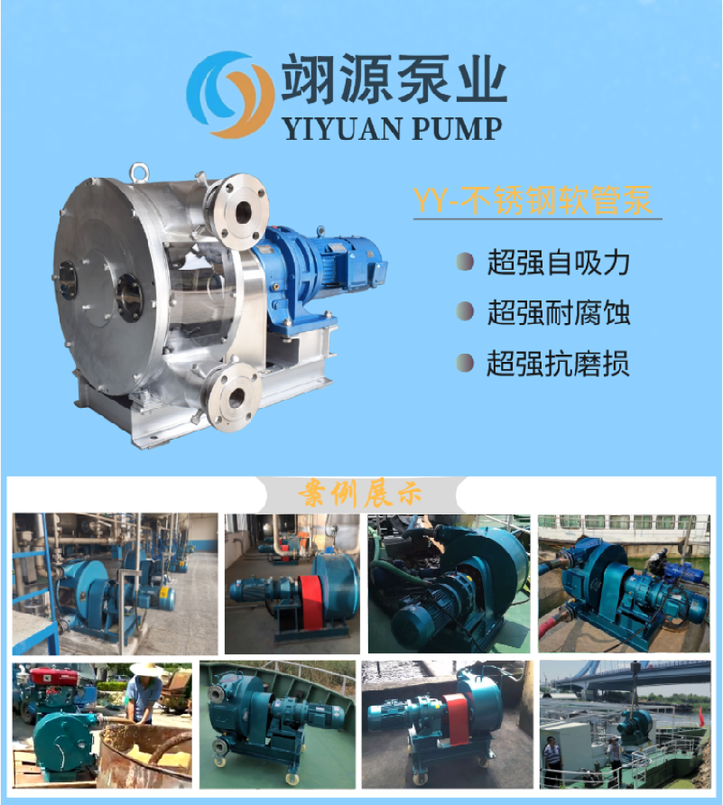 不锈钢软管泵:是吸收了国外先进技术而开发的一种新型的、多功能、多用途工业泵。它彻底摆脱了传统泵叶轮和轴密封的运行模式,对粘度大、腐蚀性大、流体杂质大的介质输送具有极大的优势,是和传统输送泵的截然不同的原理,应用范围广。